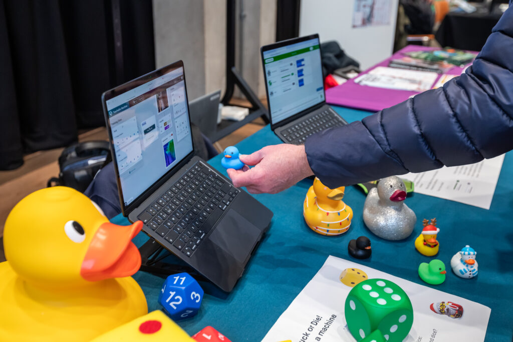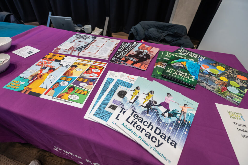 Our stall showcased some of our most popular teaching resources and learner activities. Visitors of all ages, from school students to parents, educators and the general public, were particularly keen to try our “Duck or Die” activity and learn more about our work to bring responsible AI literacy into the schools in Scotland.