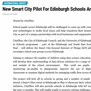 Pupils invited to help make Edinburgh a smart city, Smart Cities World, February 2019
