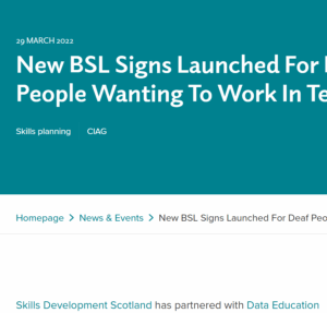 New BSL Signs Launched For Deaf People Wanting To Work In Tech, Skills Development Scotland, March 2022